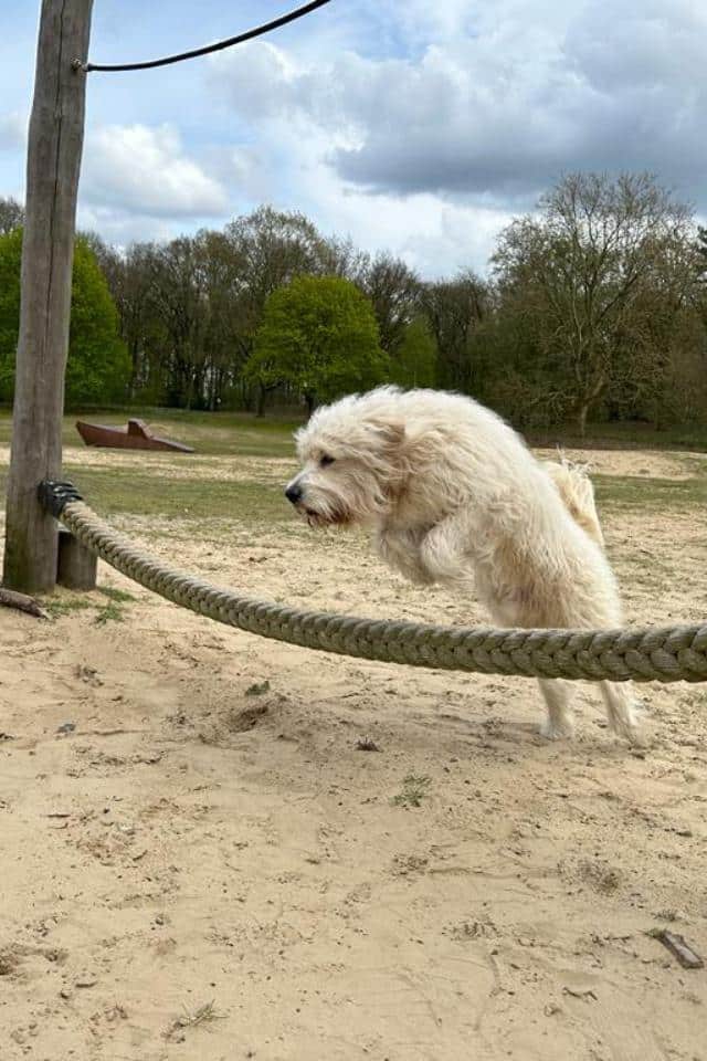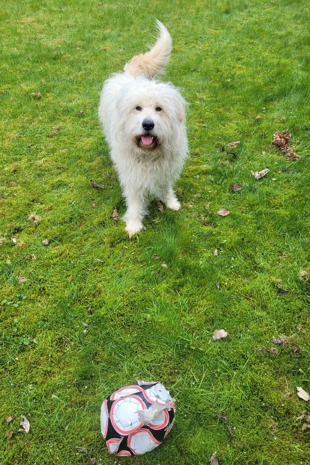 Ik ben een Golden Doodle. Dat komt omdat mijn moeder een Golden Retriever is en mijn vader een Labradoodle. Zo heb ik van allebei een beetje.